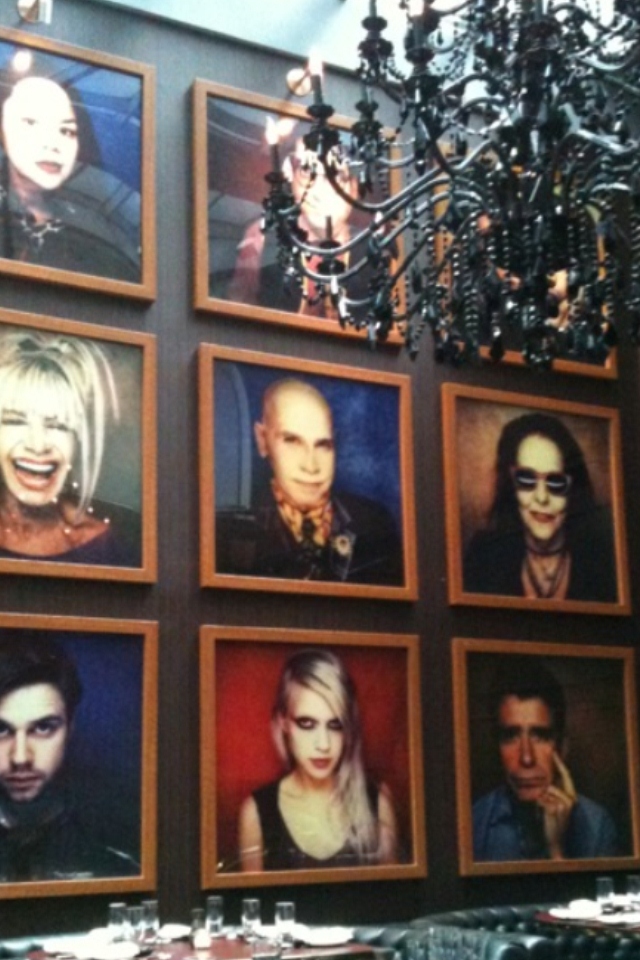 - The atmosphere (loud but not overbearing music, low seating, huge black chandeliers, pop art, and a lot of sparkle) was perfect for a girls night out. I would take any female friends back here for a drink and a snack. It’s the kind of restaurant you do not wear flats to, and almost feel bad eating at since the average body fat index in the room lingers around .05%. Also, the host was hot.