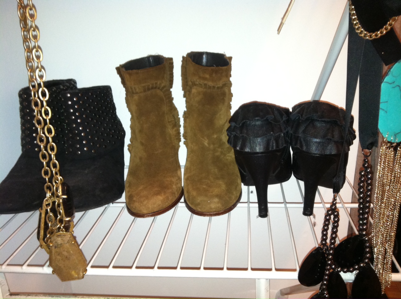 […and a necklace organizer. Shoes (L-R): Forever 21, Tila March, Report Signature. Necklaces: Ann Taylor, H&M, NYC Street Vendor]