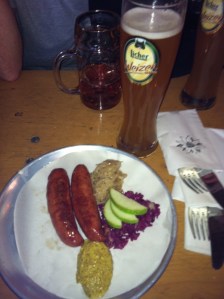 [Cheddar and pork sausage/beer that I can’t pronounce at The Standard Biergarten]