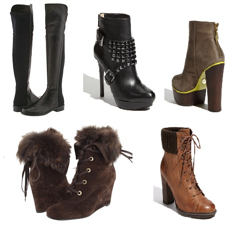 Yes, all caps. Boots are the freaking BEST. I don’t love summer shoes–most people’s toes are pretty gross, and I have seen many an unpedicured toe ruin a perfectly good pair of strappy wedges. This is never the case with winter shoes. Winter shoes hide all, and are so much more fun to buy. There are booties, boots, over the knee boots, heels, flats, wedges, suedes, leathers, furs–winter footwear options are really endless. For everyday work-wear, I have been rotating my Bottega Veneta brown leather boots, a black slouchy pair I inherited from my mother, and rich chocolate Sam Edelman boots that just cover my ankles. This winter, I am in the market for a flat, black, over the knee pair, a heeled furry pair, and a badass studded/sparkling pair. I’ve been lusting after all of the above options.