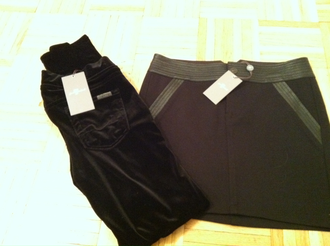 [Pants/”Veggings” (Velvet Leggings): Seven for all Mankind. Skirt: Seven for all Mankind. Can’t find the exact skirt online cause I got it at my favorite place in the world, Loehmann’s, but this one is a fun option]