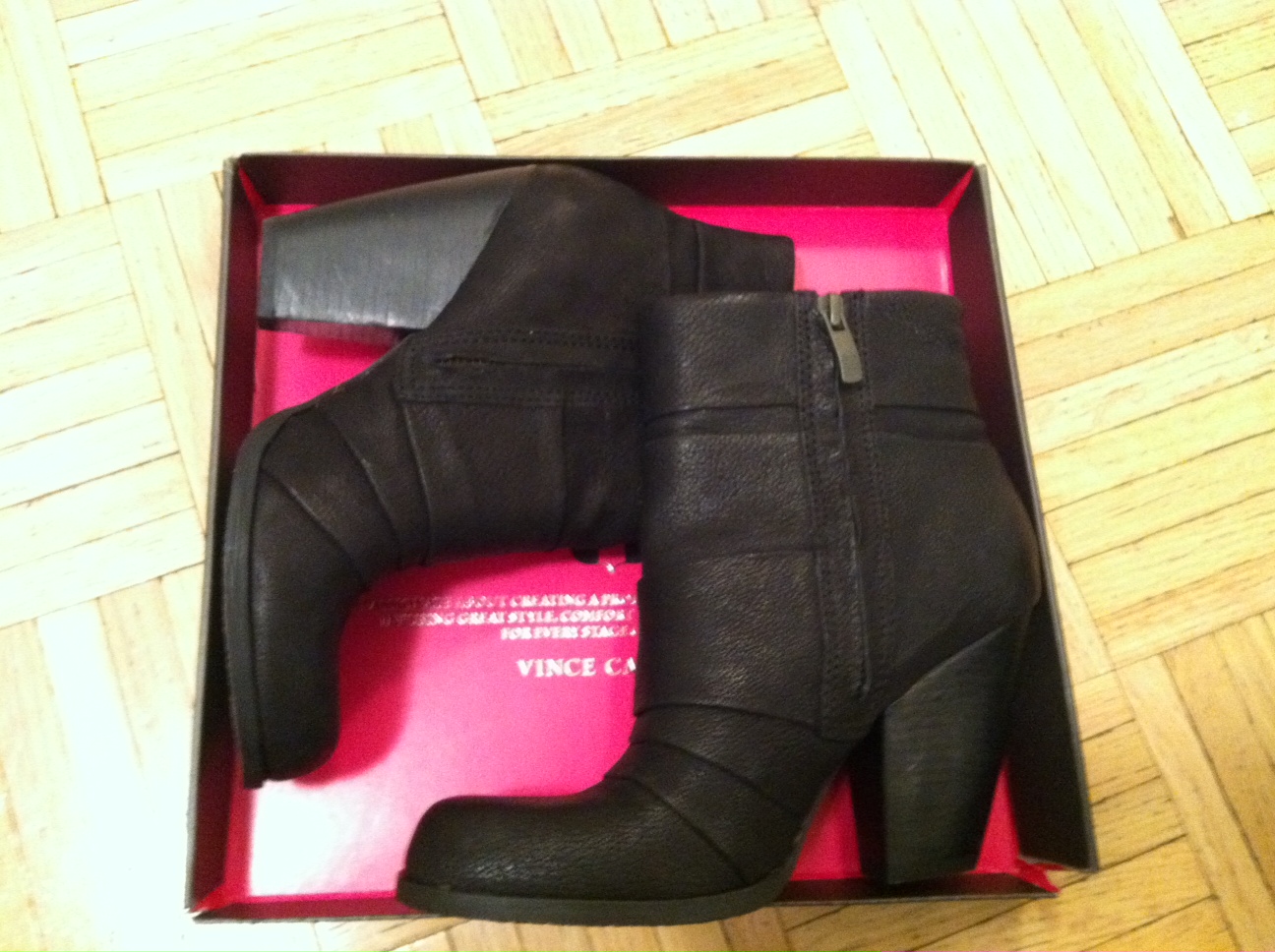 [Booties: Vince Camuto. These booties are literally the most comfortable shoe I have ever owned. The wedge heel is 3.5 inches and so thick that it almost feels like a flat. I could walk miles in them. By which I mean, I walked to work in them, once, and my feet felt fine. Also that day was today. I know it’s only 10:30AM but thus far, my feet feel wonderful]