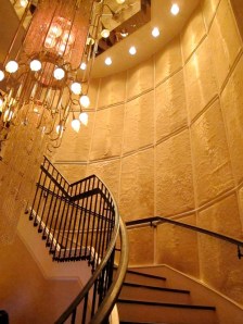 [Fur staircase. Designed by AvroKO, who are also behind the decor for some of NY favorites–Bourbon Steak, Double Crown, Public, Zengo. AvroKO, I would like a fur staircase leading up to the pressurized wall in my apartment. Image c/o AvroKO.]