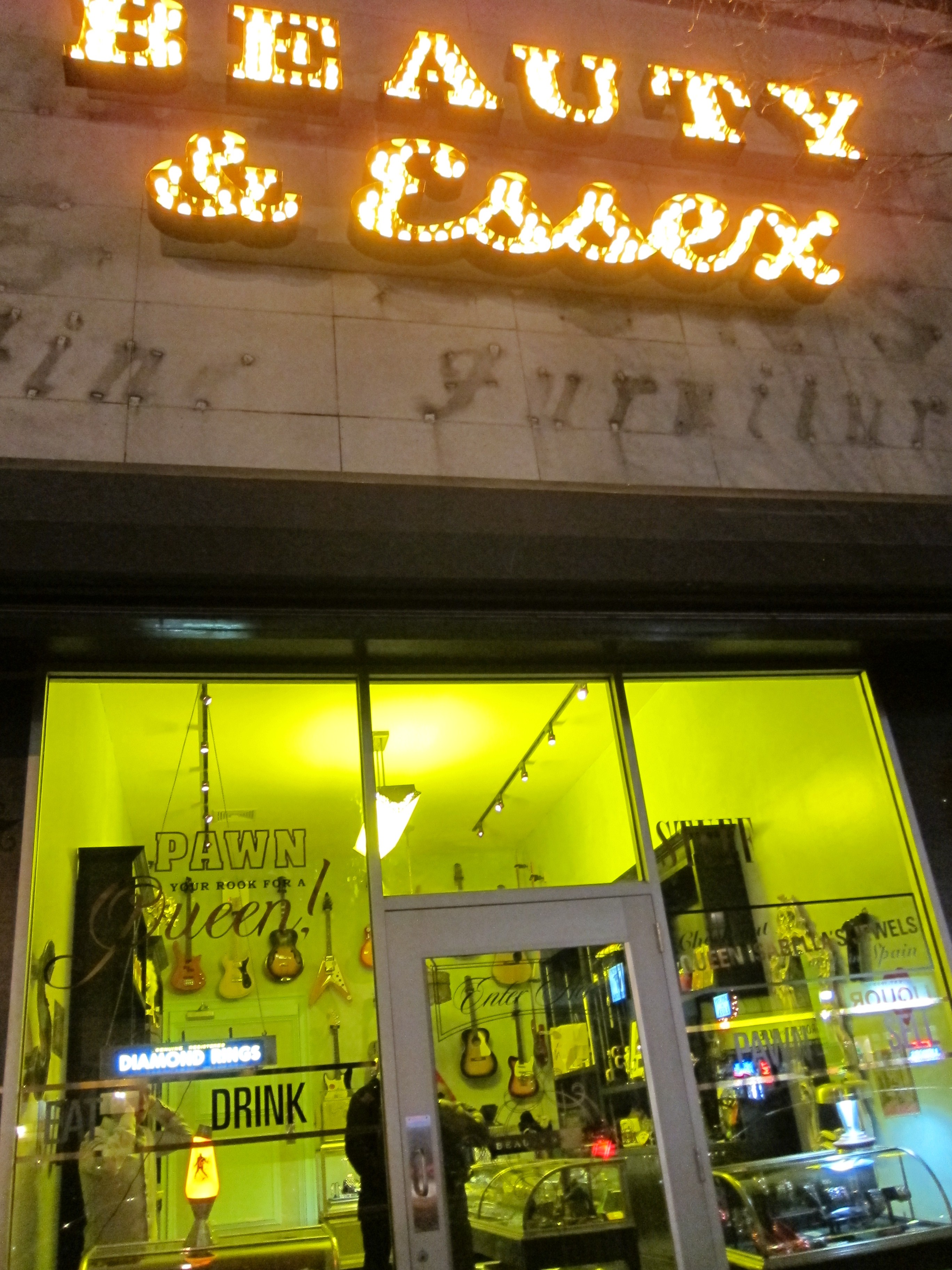 [The entrance, disguised as a pawn shop. I would have thought this was cooler if I wasn’t out of breath and sans coconut water, but it is pretty sweet. Image c/o Food Comas, a wonderful site with the tagline “the gastronomic adventures of three hungry girls.” (Please be my friends?)]