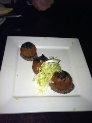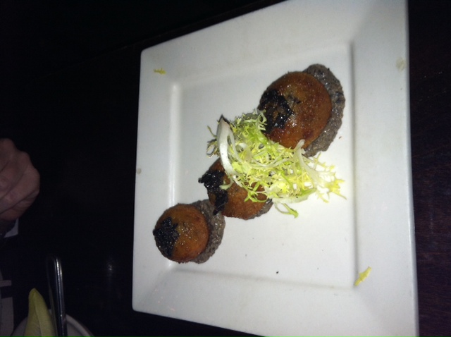 [Champinones with wild mushrooms, rosemary, thyme & truffle followed. These were not my favorite dish, but there’s not much bad one can say about fried truffle balls]