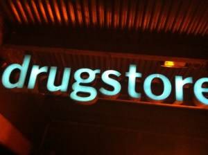[Cool because this is not an actual drugstore, rather the bar area of a club called Rosi’s, located in an abandoned warehouse full of old furniture and strobe lights. The other club we went to was in an old WW II bunker underground. Berlin’s nightlife is really strange and awesome]