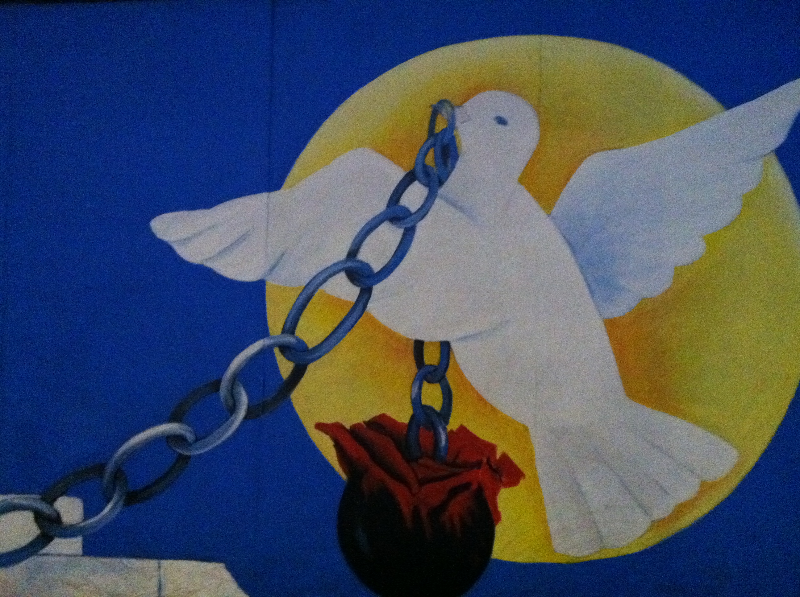 [A snapshot of the East Side Gallery of the Berlin Wall–1.3 km of art painted on the infamous structure, a definite must-see]