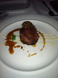 [I had been told to try the kangaroo at PUBLIC, and even though I felt a tiny bit guilty ordering kangaroo since a) they are really freaking cute, b)were my favorite animal for many years and c)their gestation techniques are literally genius (how wonderful would it be if I could carry my future children in a pouch across my stomach? I’m thinking a Chloè crossbody, cream if it’s a summer baby and chocolate if it comes in winter?), but I am so glad I did, because as adorable as kangaroos are, it turns out they are also DELICIOUS. Our kanga was served grilled on a coriander falafel with lemon tahini sauce and green pepper relish. It tasted like really fine beef with a tangy aftertaste, and as long as I don’t have to personally catch and prepare it, I will be glad to order it again on any menu]