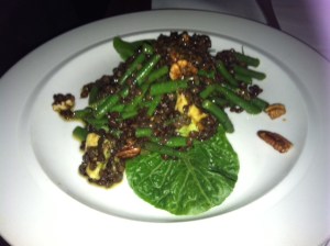 [With the scallops, we had a salad of lentils, green beans, avocado, toasted pecans and baby spinach with pomegranate molasses and avocado oil vinaigrette. This was ridiculously fresh and delicious]