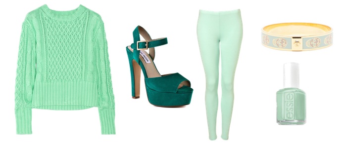 [Top: Acne, Shoes: Steve Madden, Leggings: Topshop, Bangle: Alexander McQueen, Nailz: Essie Mint Candy Apple]