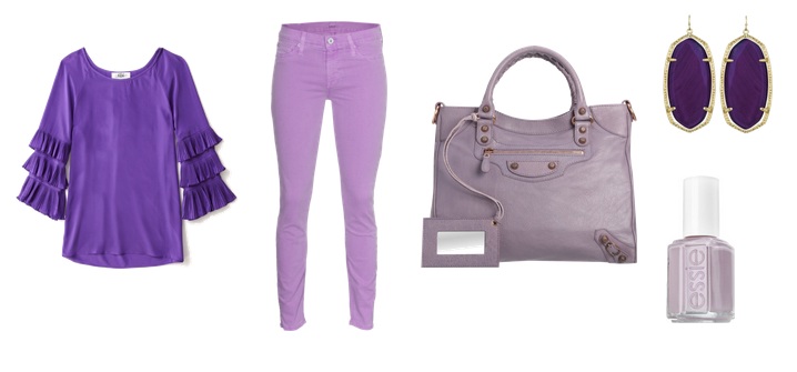 [Top: Tibi, Jeans: Hudson, Bag: Balenciaga, Earrings: Kendra Scott, Nailz: Essie Lilacism]