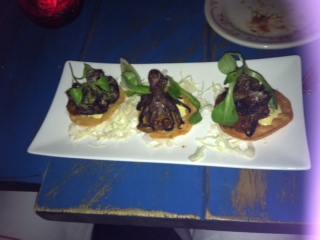 [Grilled Octopus Tostada: This was my favorite thing we got. So crispy and delicious–even cute. A shame we were eating that nuzzler]