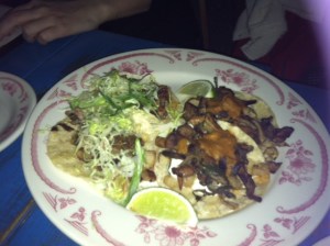 The preliminary purpose of our dinner was drinking enough to have something to talk about with everyone we had known in high school, so rounds of Margaritas (not too sweet and lots of booze), wine ($8 by the glass) and vodka-sodas (a Ruski’s gotta stick to her roots) started our meal. For food, we ordered a bunch of small share plates, all of which were delicious. Had our waitress not resembled Carey Mulligan in demeanor and French Carey Mulligan in accent, I might have been pissed that we were given the wrong ceviche, or not brought out an order of taquitos, or that my first vodka-soda tasted like soda-soda (Carey quickly learned from her mistake and proceeded to bring me drinks so strong I needed a full lime to mask their flavor–attagirl), however, we were here for a) booze, and b) atmosphere, so I let it slide. The food we did get was delicious.