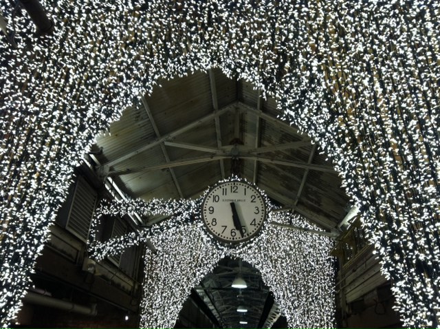 [Last remaining holiday cheer at the Chelsea Market. Now that even the stragglers (except for my office. Note to office–I love you dearly but please, please take down our Christmas tree) have gotten rid of their holiday decor, I kind of miss a brightly lit up and festive New York. The Chelsea Market (also, one of my favorite places in the city) remains lit up with a million little lights, making a day spent buying meats at Dickson’s Farmstand, cheese at Lucy’s Whey, and seafood at The Lobster Place all the more merry]