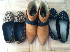 [Fave winter kicks—Kelsi Dagger leopard loafers, Matt Bernson ankle boots, Topshop studded skimmers]