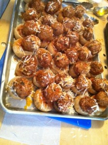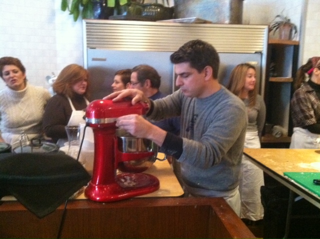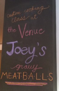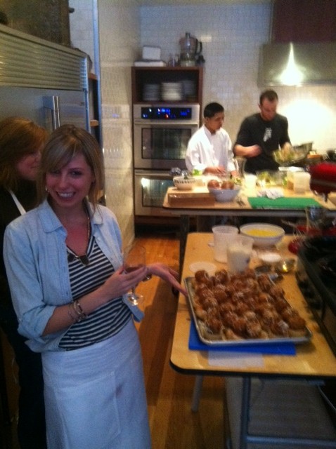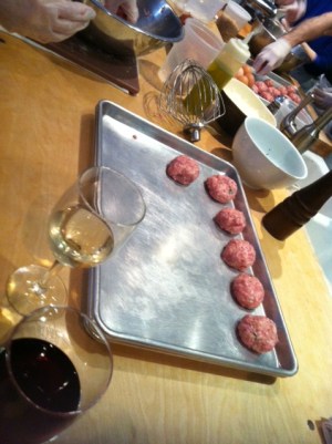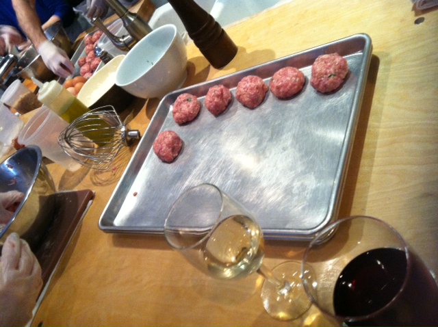 As I mentioned on Monday, this past weekend, my boyfriend and I took a meatball making class with The Little Owl‘s Joey Campanaro. The class was an awesome experience–we, along with a group of 20 or so others, got to work with Joey to make his famous meatball sliders, hand-pulled pasta, and other delicious tidbits. We followed Joey’s award-winning recipe, which, despite looking exceptionally complicated, was easy enough for me to attempt to replicate in my thirty square foot kitchen (of course, it’s considerably more likely that I will just venture out to The Little Owl next time I get a craving and save my poor oven the hassle).