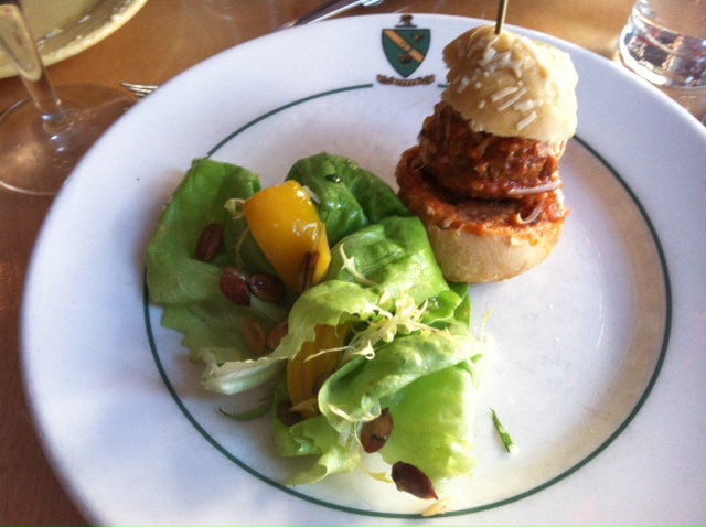 [The final result–Butter Lettuce, Butternut Squash & Mango Salad and Joey’s famous Meatball Sliders]
