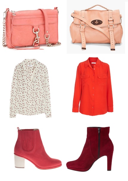 [Left to Right: Rebecca Minkoff Bag, Mulberry Bag, Equipment Blouse #1 & Blouse #2, Opening Ceremony Booties, Gastone Lucioli Booties]