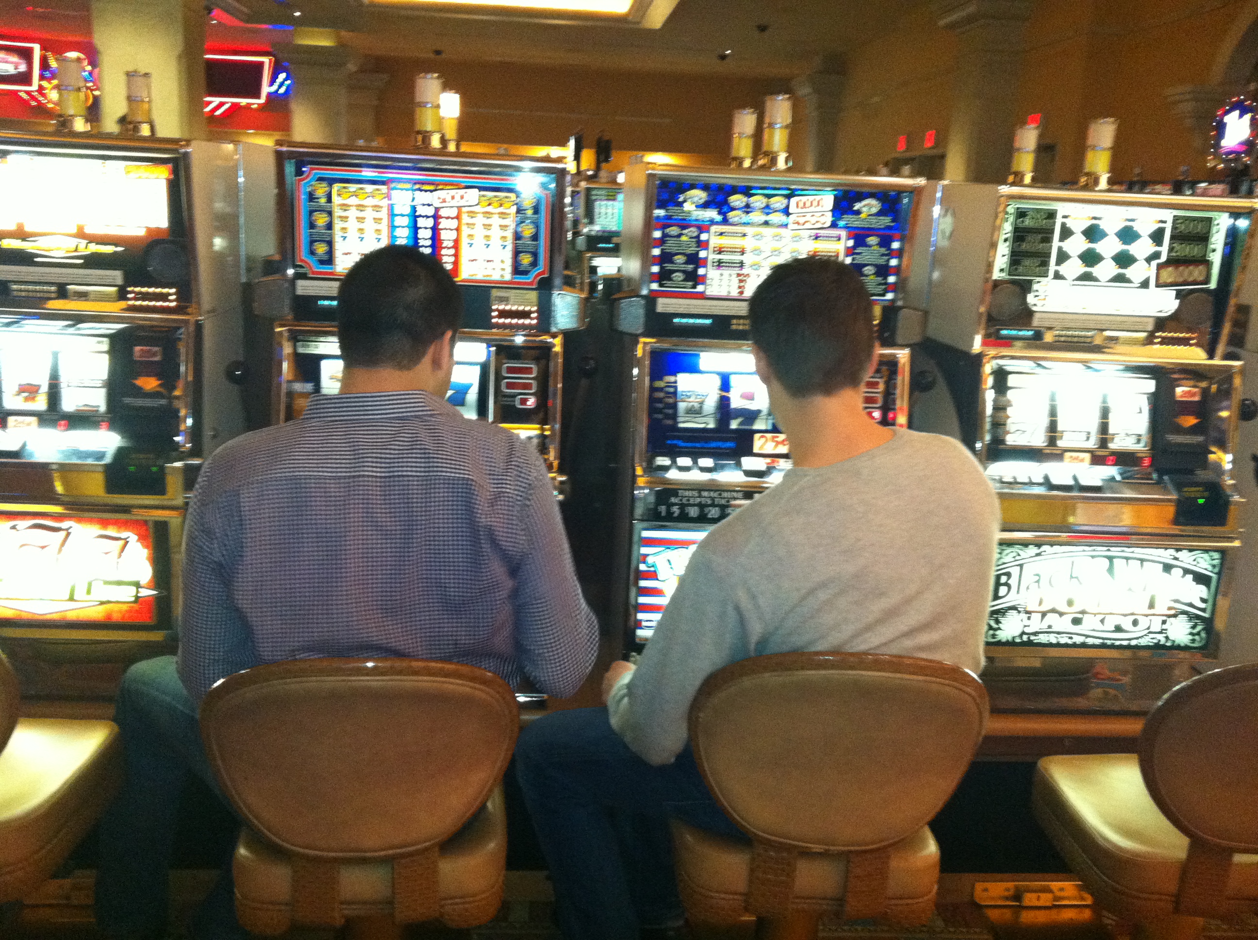 [Be Merry: I don’t think you’re allowed to take pictures in casinos, but I snuck this one. An Asian lady hoarding a large bag of quarters and about seven Bud Lights gave me a realllly dirty look]