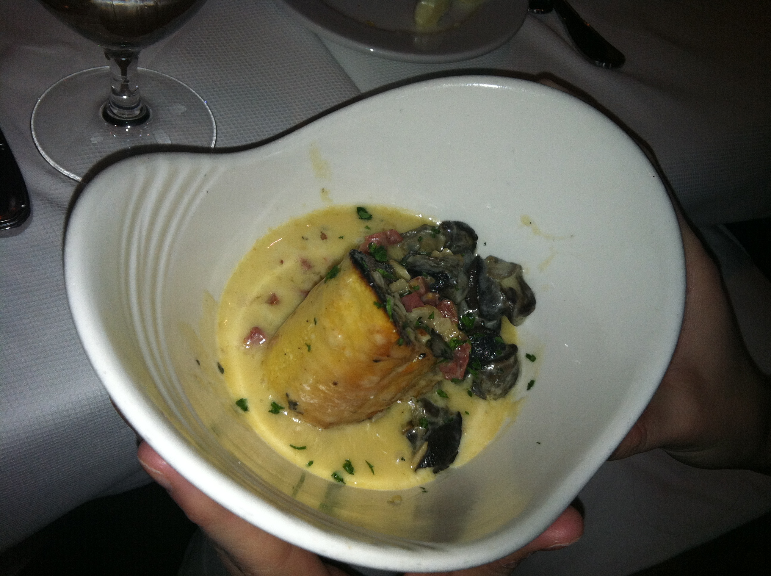 [Eat: Sautéed Escargot with Shallots, Soppressata, and Roasted Garlic in Fresh Herb Cream. In a HEART shaped bowl. Come onnnnn]