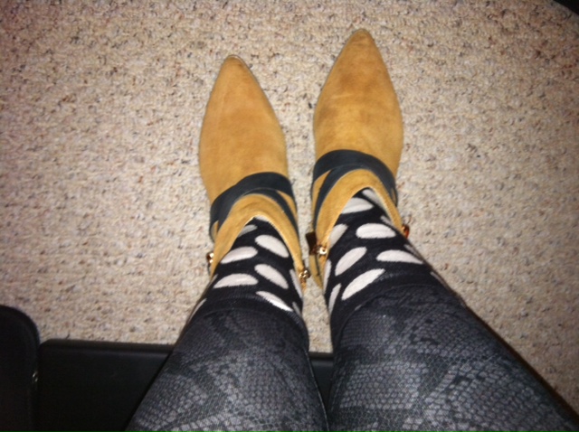 [Proof of a weekend spent without the boyfriend–Man Repelling legwear. Booties: Matt Bernson, Socks & Leggings: H&M]