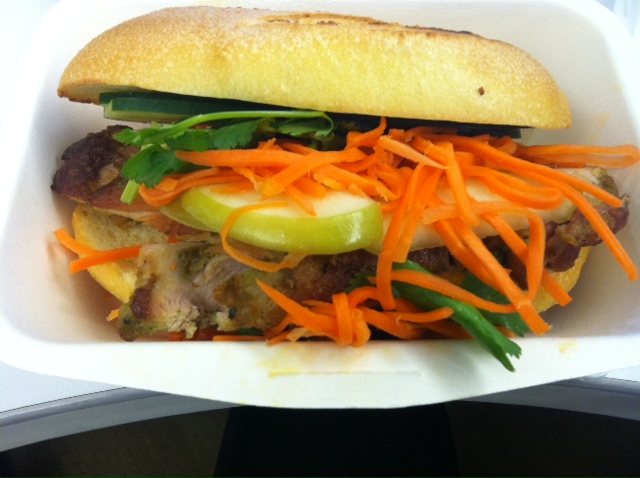 [The best weekday lunch sandwich ever from Num Pang, introduced to me by my favorite sandwich expert, the boyfriend. Since weekdays lunch more often than not consists of Lean Cuisines and mediocre Chop’t salads at my desk, this comes as a real Friday treat. The above is roasted chicken with pickled apples and yogurt-chili mayo. Nom]