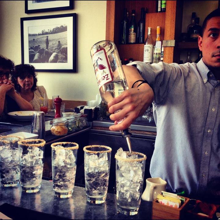 [The beginnings of an epic brunch at Cookshop. That is one hefty pour, Mister Bartender. There goes the rest of my afternoon]