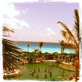 [View of Palm Trees & Ocean: mine, Photo: doctored with Instagram, Circle of People Frolicking In Pool: 100% Unstaged. I die]