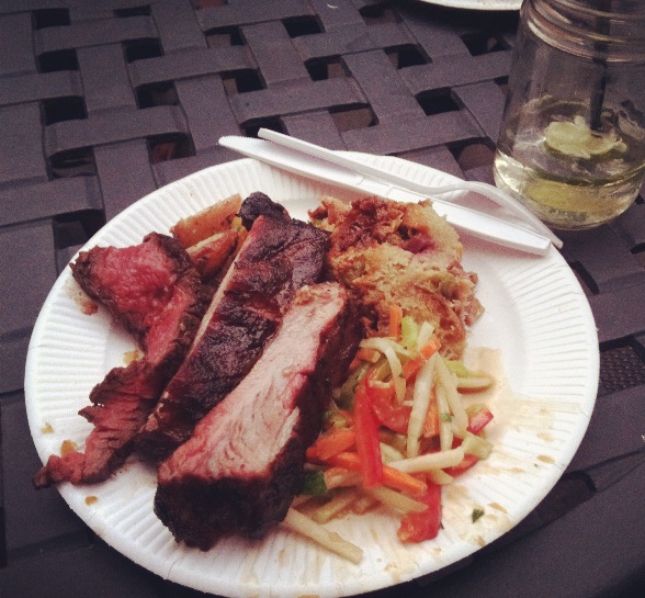 I was a vegetarian for my last two years of college and my first year out of it, and in an effort to apologize to my taste buds, I have spent every BBQ season since then over-indulging in grilled, fried, pulled, sauteed, and otherwise prepared animal products. While I’m all for consumption for a healthy and world-conscious lifestyle (On weekdays, I am a pescatarian, and when I eat meat, I try to look for organic, local, and grass-fed products)–I certainly let myself run wild in the first few weeks of summer, when every sunny day is an excuse to break out the grill and the sangria pitcher.