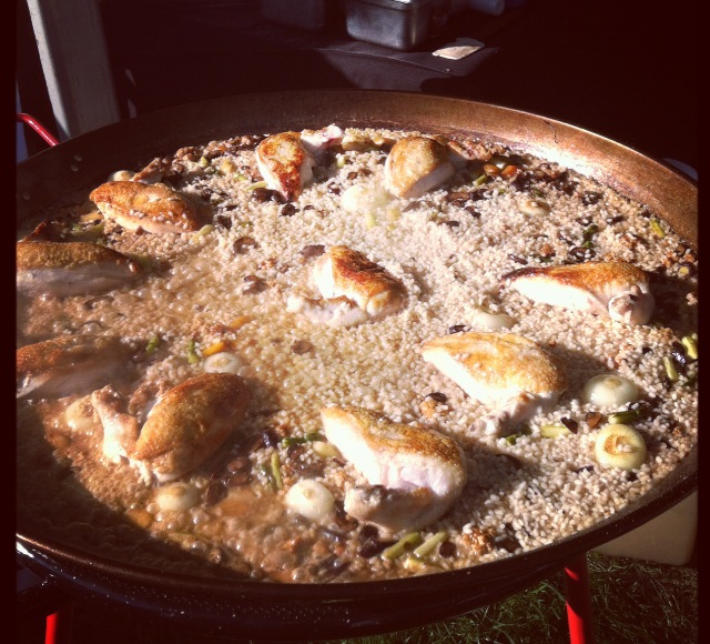 [Massive paella from Tertulia at Googa Mooga. I wish I could stand next to this paella to demonstrate to you the size and scale. Since I am not, suffice it to say I could have sat in this vat of paella and took a paella-bath. Not very cleansing, perhaps, but would have definitely tasted better than getting suds in your mouth]