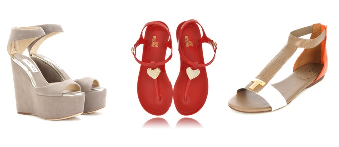 [And finally, Shoes. Wedges: Jimmy Choo, Jellies: Love Moschino, Flats: Tory Burch]