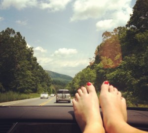 [Pretty Drives. This is a bad angle for my feet, which look like they belong to an obese middle aged woman, but a good angle for the sky, so I’ll be selfless]