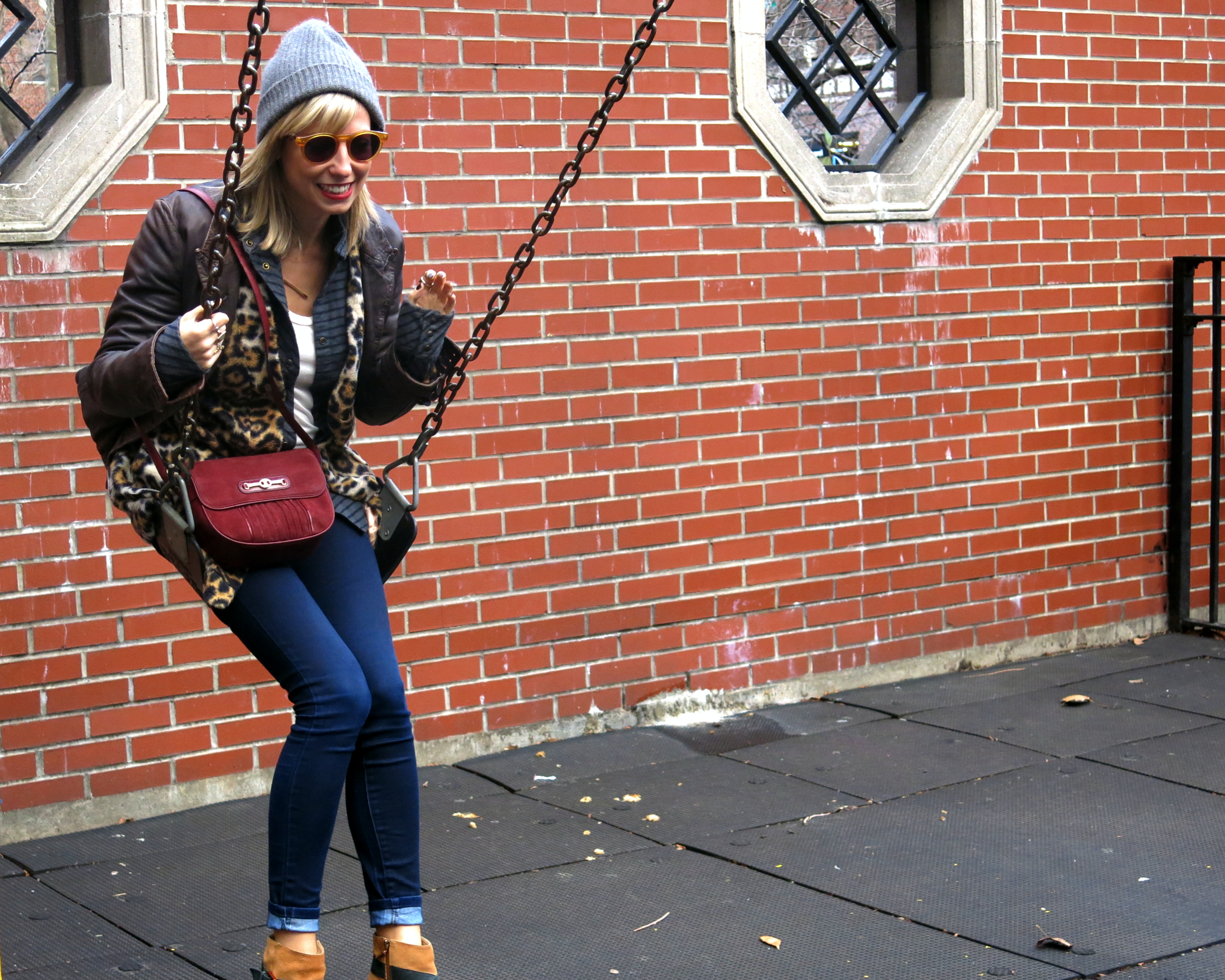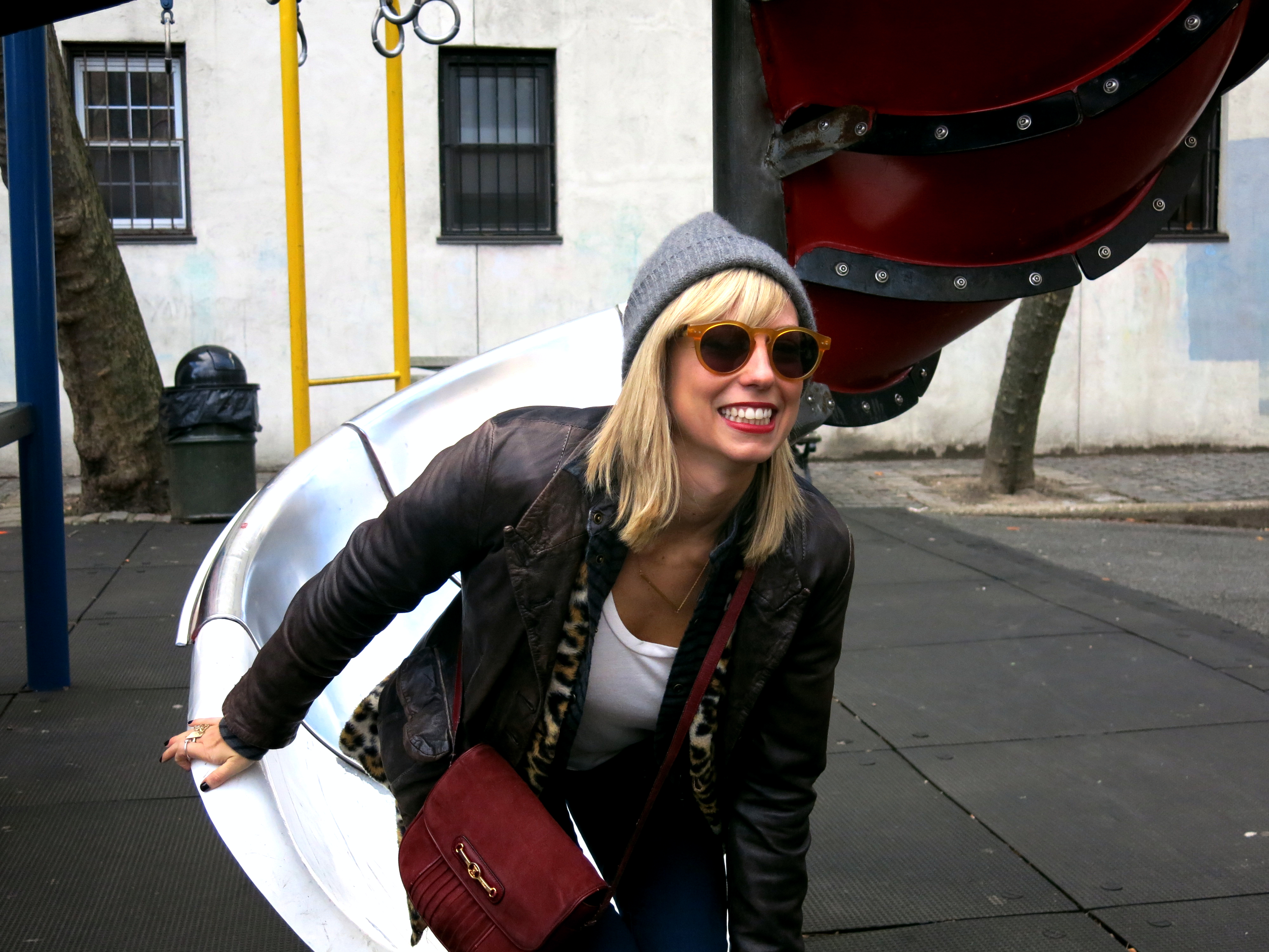 The below photos were taken by my cousin in a playground we stumbled into after a delicious brunch at Ellary’s Greens in the West Village. The other three people at the playground (two adult humans and their child, who actually belonged there) shot us some quizzical looks, quickly assumed we’d had sad, limited childhoods and couldn’t be trusted around their toddlers, and promptly evacuated the premises. Great news for both my photos and my upper arm strength, as I was left with full jurisdiction over the monkey bars (can we take a moment to quickly ask why little kids don’t have more sculpted triceps and shoulders? Because, damn, monkey bars are hard).