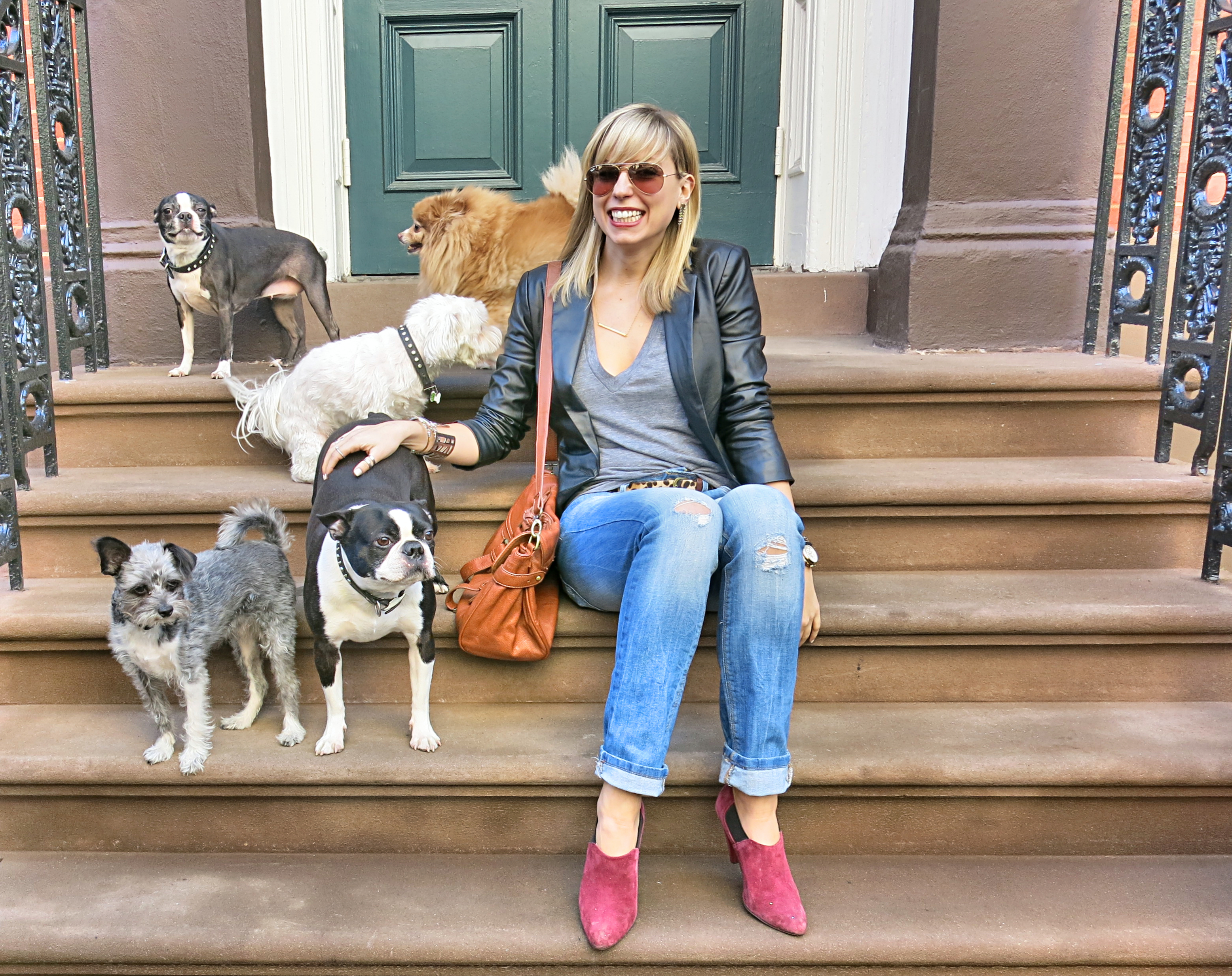 The above are two of my best celebrity sightings (Ed Norton because he was delightfully awkward at yoga and Beyonce because sometimes when I am sad I think of the radiant glow that she exuded that night), but my truly favorite people to run into in New York aren’t the famous kind–they’re true, real, bizarre, and wonderful New Yorkers. Take, for example, the two little old ladies, decked out in full-on Liza-Minnelli-robs-an-Hermès garb, smoking Virginia Slims while walking their collective seven studded-collar puppies, who stumbled upon this past Saturday’s West Village photo shoot and decided that their dogs absolutely had to take part.