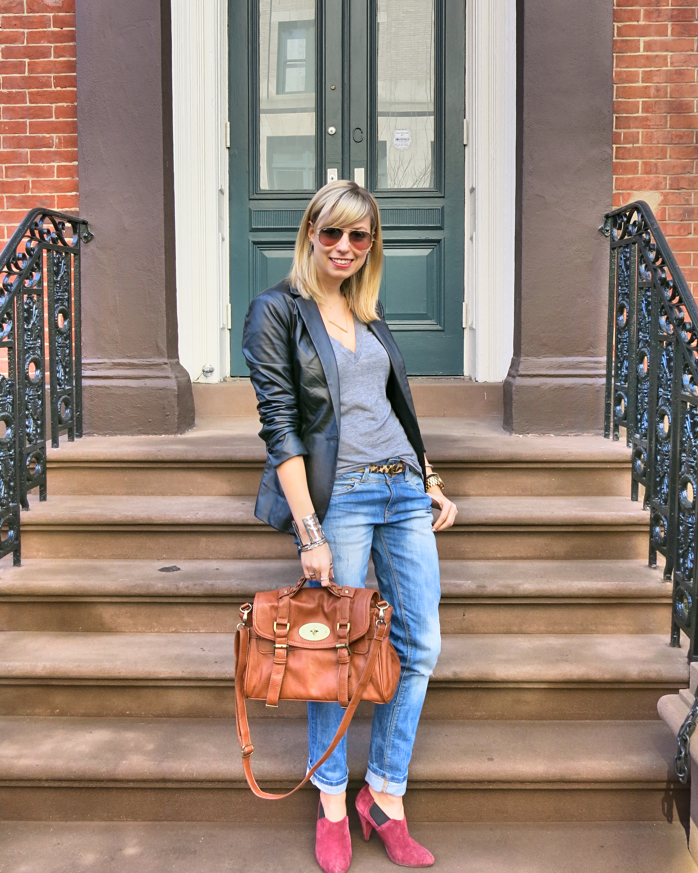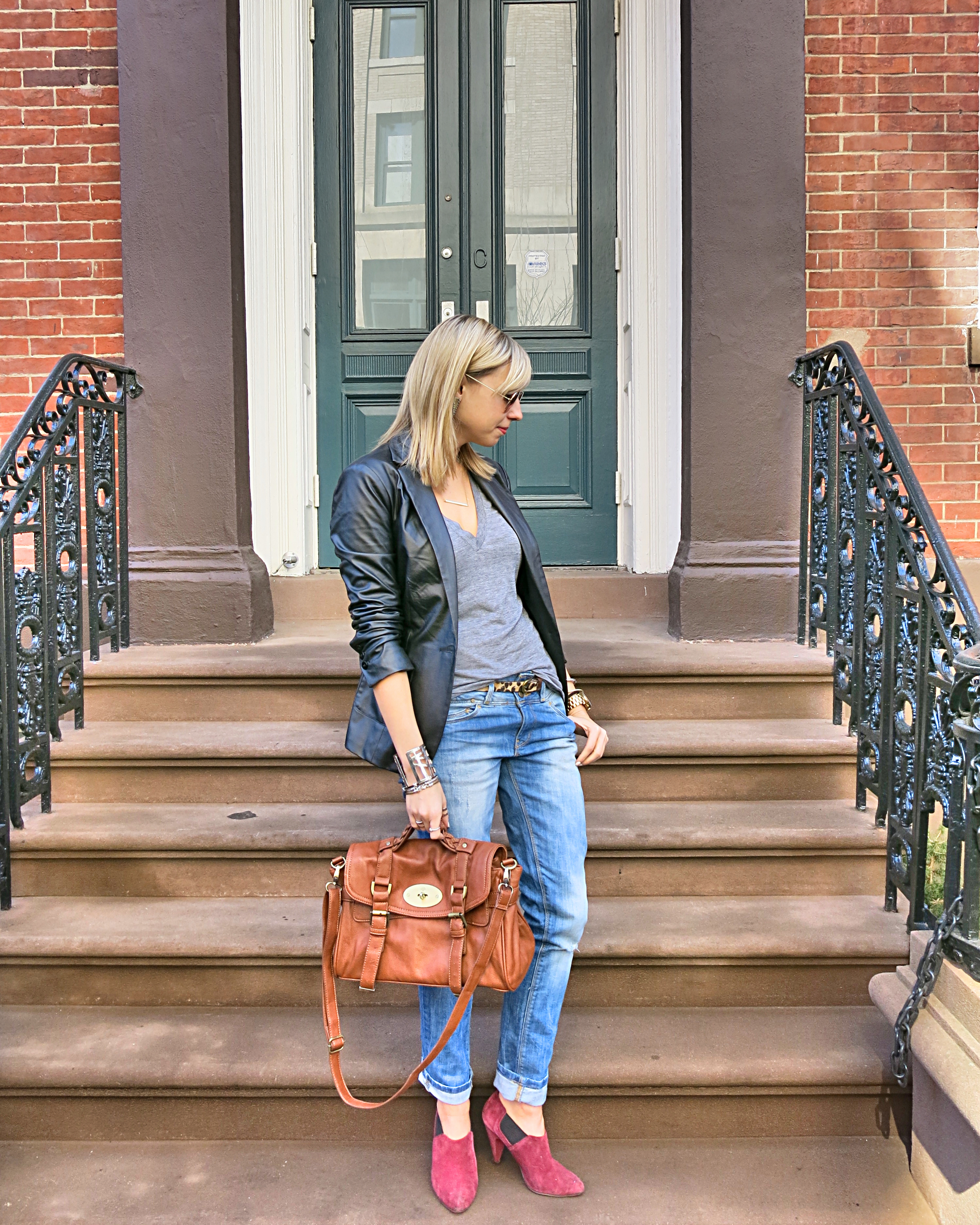 - Leather Blazer: Vintage via No Relation (buy similar here by Helmut Lang or here from Neiman Marcus, both on sale for over 50% off)
