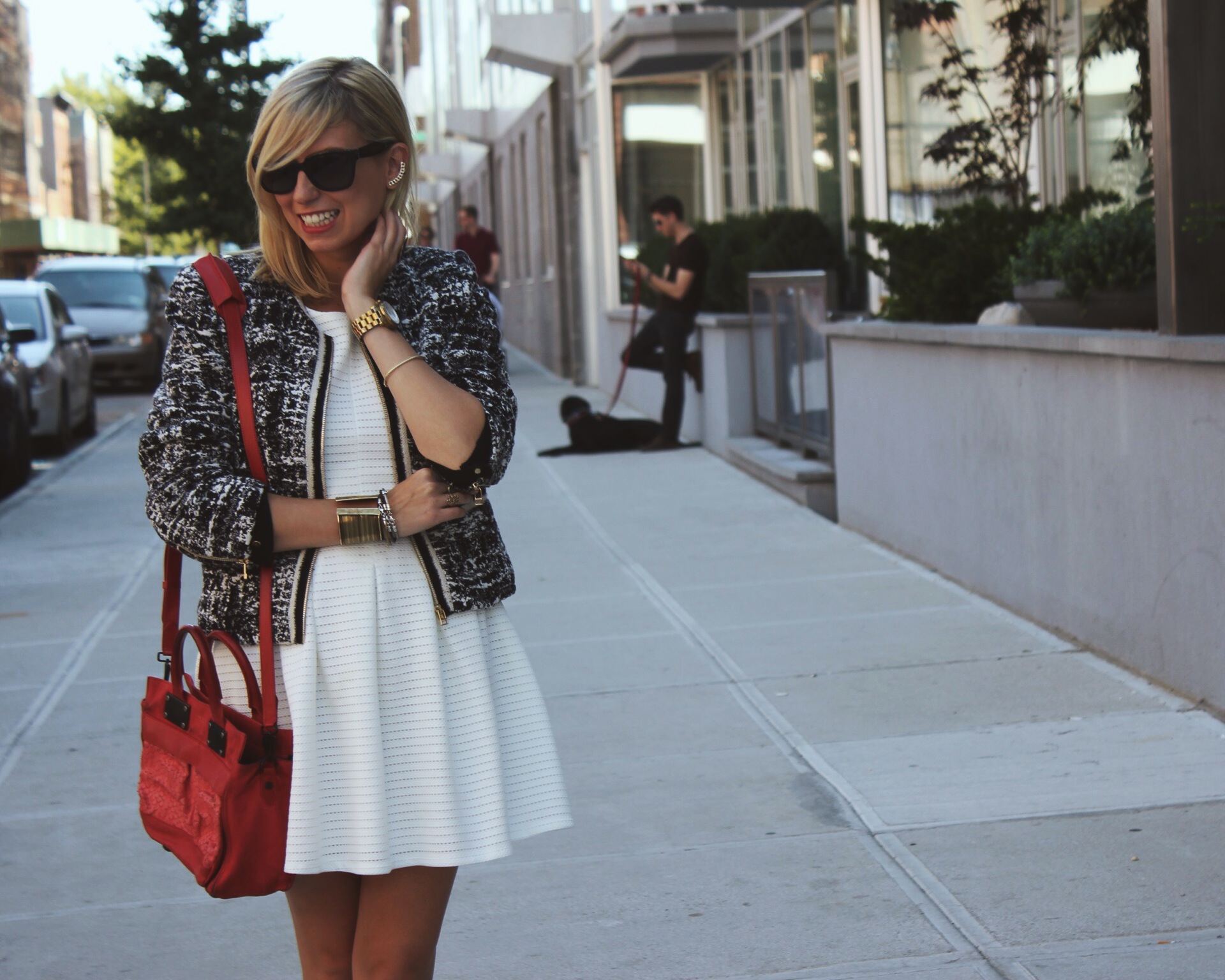 This structured tweed jacket/fit-and-flare dress combo is probably the most corporate we’ll ever get over on this corner of the internet. Sometimes, it’s nice to dress like a grown-up, and see what happens.